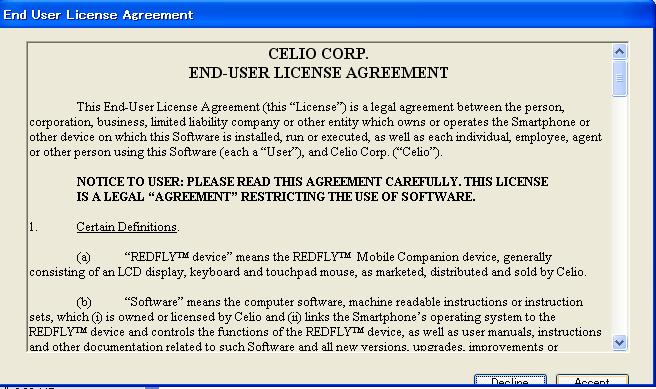 ドライバソフトのインストール画面が出てきます。で、母艦にUSBで端末を接続してアクティブシンクが起動するのを待ちます。アクティブシンクが起動したら、Installボタンを押すとライセンス同意画面がでます。