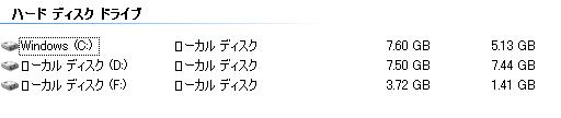 起動後の状態は となり、USBメモリがCドライブで、4GSSDがGドライブになっていることがわかります。
